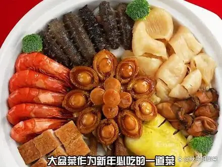 盆菜盆菜是广东人过年阖家团圆的象征,汇聚各种食材,层次丰富。底层一般铺上萝卜、白菜等耐煮蔬菜,中层放上猪皮、鱿鱼、腐竹等,上层码放烧腊、大虾、鲍鱼等珍贵食材。制作时,先将各类食材分别烹饪,再依次放入大盆中,加入用猪骨、鸡骨等熬制的高汤,小火慢炖,让各种食材的味道相互交融,寓意着 “团圆美满”,一家人围坐共享,其乐融融。莲藕猪手煲莲藕谐音 “佳偶”,猪手寓意 “横财就手”。猪手洗净切块,焯水后与切成块的莲藕一同放入砂锅中,加入姜片、葱段、料酒、生抽、老抽、冰糖等调料,加适量清水,大火烧开后转小火慢炖 1.5 - 2 小时,直至猪手软烂、莲藕粉糯。这道菜口感醇厚,饱含对新一年爱情美满、财运亨通的祝福。马蹄糕